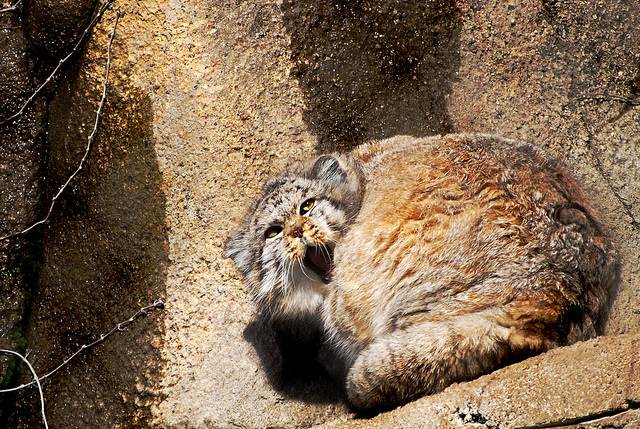 delet... Posted August 6, 2012 Report Share Posted August 6, 2012 I was drawn into a wiki expedition of the felis genus by way of a mention, on the second not the nine o'clock news special, of the the surrey panther. And found this beauty, so i thought that i'd share. Not looking that pleased in this image. heh. Anyway. Quote http://en.wikipedia....ki/Pallas's_Cat Reveal hidden contents Characteristics Pallas's cat is about the size of a domestic cat, with a 46 to 65 centimetres (18 to 26 in) long body and a 21 to 31 centimetres (8.3 to 12 in) long tail. It weighs 2.5 to 4.5 kilograms (5.5 to 9.9 lb). The combination of its stocky posture and long, dense fur makes it appear stout and plushy. Its fur is ochre with dark vertical bars on the torso and forelegs. The winter coat is greyer and less patterned than the summer coat. There are clear black rings on the tail and dark spots on the forehead. The cheeks are white with narrow black stripes running from the corners of the eyes. The chin and throat are also white, merging into the greyish silky fur of the underparts. Concentric white and black rims around the eyes accentuate their rounded shape. The legs are proportionately shorter than those of other cats, the ears are set very low and wide apart, and it has unusually short claws. The face is shortened compared with other cats, giving it a flattened face. The shorter jaw has fewer teeth than is usual among felids, with the first pair of upper premolars being absent.[4] Distribution and habitat Pallas's cat is native to the steppe regions of Central Asia, at elevations up to 5,050 metres (16,570 ft).[5] They are found in the Transcaucasus and Transbaikal regions of Russia, and, less frequently, in the Altai, Tyva, and Buryatia Republics. They also inhabit Kyrgyzstan,Pakistan,Kazakhstan, Mongolia,Kashmir and across much of western China, especially in the Tibetan Plateau.[6] In 1997, they were reported for the first time as being present in the eastern Sayan Mountains.[7] Populations in the Caspian Sea region, Afghanistan, and Pakistan, are declining, and increasingly isolated.[8][9] In 2008, an individual was camera-trapped in Iran's Khojir National Park for the first time.[10] Distribution of subspecies Pallas's cat at the Edinburgh Zoo Three subspecies are recognized:[11][1] Otocolobus manul manul (Pallas, 1776) — inhabits the northern part of the range: Jida River, south of Lake Baikal, eastern Siberia; Otocolobus manul nigripecta (Hodgson, 1842) — inhabits Tibet and Indian Kashmir; Otocolobus manul ferruginea (Ognev, 1928) — inhabits the south-western part of the range: the mountain ridge of Missanev, Kopet-Dag Mountains, Transcapia, northern Iran, south-western Turkestan, Afghanistan, Baluchistan. Ecology and behaviour Pallas's Cat at the Zurich Zoo Pallas's cats are solitary. Both males and females scent mark their territory. They spend the day in caves, rock crevices, or marmot burrows, and emerge in the late afternoon to begin hunting. They are not fast runners, and hunt primarily by ambush or stalking, using low vegetation and rocky terrain for cover. They feed largely on diurnally active prey species such as gerbils, pikas, voles and Chukar partridges, and sometimes catch young marmots.[4] YODA much. --- FU RO DAH !! ~~ -- part time killer.. (blame the russian uploader) http://youtu.be/TF7DgKzC_ao Thanks Haha Confused Sad Facepalm Burger Farnsworth Big Brain Like × Quote Hide all signatures A member of the non sequitairiate. Link to comment https://forum.watmm.com/topic/75076-pallas-cat/ Share on other sites More sharing options...