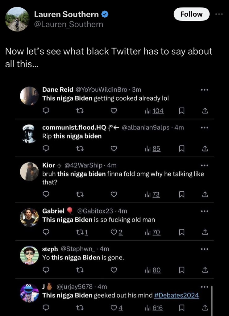 usagi Posted June 28, 2024 Report Share Posted June 28, 2024 On 6/28/2024 at 7:20 PM, decibal cooper said: Expand this dumb bitch searched for the phrase "this nigga Biden" lol. ignatius and decibal cooper 2 Thanks Haha Confused Sad Facepalm Burger Farnsworth Big Brain Like × Hide usagi's signature Hide all signatures On 4/17/2013 at 2:45 PM, Alcofribas said: afaik i usually place all my cum drops on scientifically sterilized glass slides which are carefully frozen and placed in trash cans throughout the city labelled "for women alco" with my social security and phone numbers. Link to comment https://forum.watmm.com/topic/97420-2020-us-election/page/267/#findComment-2983098 Share on other sites More sharing options...
